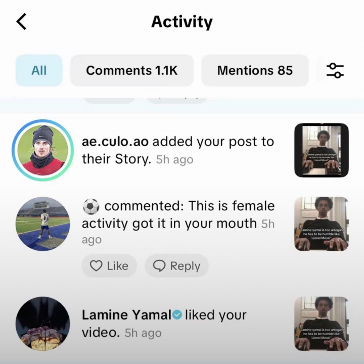 10月02日訊 亞馬爾近期點贊了一個TikTok視頻,該視頻評價亞馬爾:“拉明·亞馬爾太傲慢了,他需要像萊昂納爾·梅西一樣謙遜?!贝艘曨l目前已有38.6k的點贊。