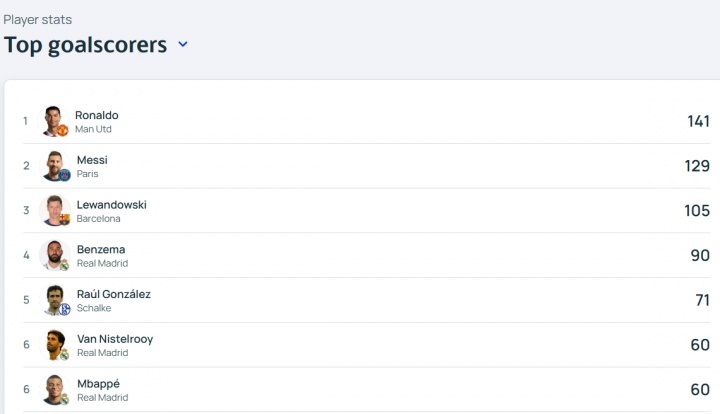 10月01日訊 皇馬5-0大勝凱拉特,姆巴佩上演帽子戲法。至此,26歲的姆巴佩在歐冠已經(jīng)打進(jìn)60球,位列歐冠歷史射手榜第6位。