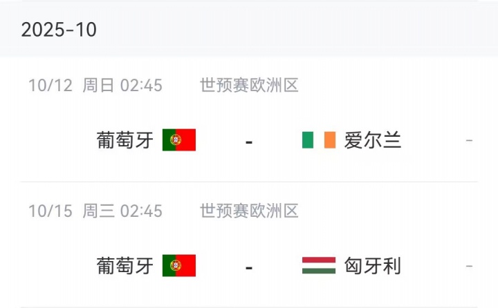 葡萄牙10月份賽程↓