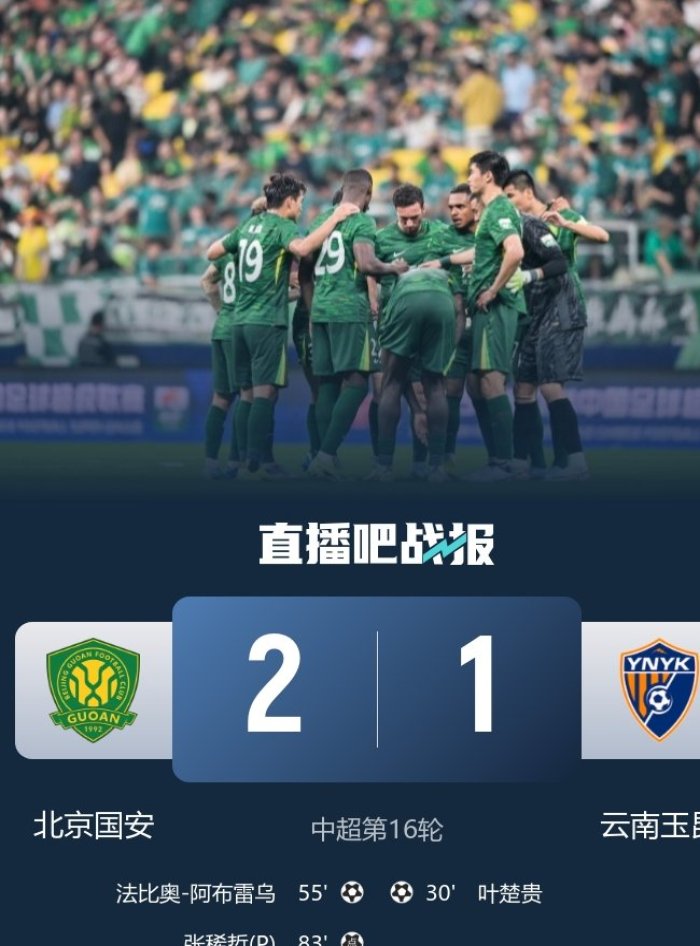 4連勝&16輪不敗領(lǐng)跑!國安2-1逆轉(zhuǎn)云南玉昆 張玉寧替補(bǔ)助攻+造點(diǎn)