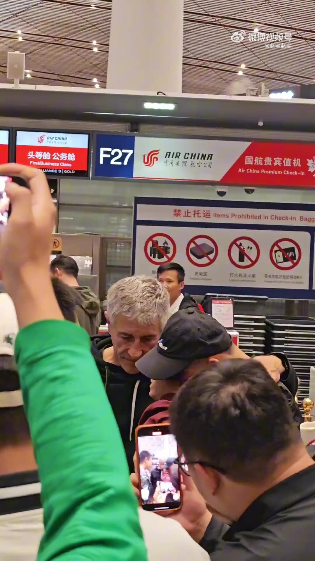 10月8日訊 據(jù)記者趙宇消息,塞蒂恩今晨離開北京返回西班牙,部分國安球迷前往機(jī)場送行,國安球員張源含淚送別。