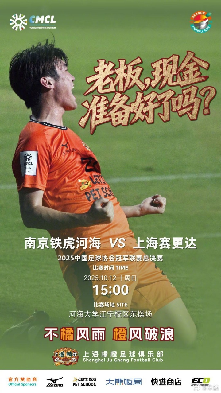 10月12日訊 中冠決賽階段分組賽第7輪,上海橘橙客場1-0戰(zhàn)勝南京鐵虎,獲得A組第一,晉級2026中乙聯(lián)賽。