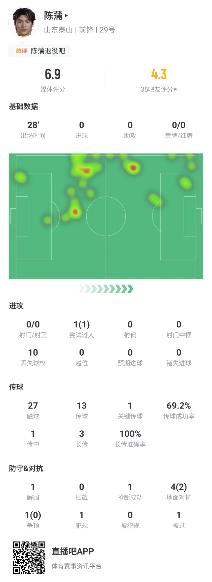 11月01日訊 中超第28輪,山東泰山2-1擊敗天津津門(mén)虎,賽后替補(bǔ)登場(chǎng)的陳蒲表現(xiàn)遭到球迷吐槽。