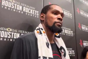 回雷霆主場(chǎng)有沒有想見的人?杜蘭特果斷搖頭:沒有!