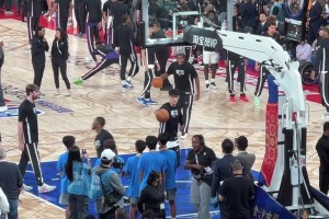 籃網(wǎng)教練能不能給機(jī)會(huì)?中國賽現(xiàn)場(chǎng)球迷記錄曾凡博熱身畫面