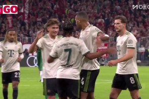 拜仁1-0領先!奧利塞右路傳中,塔腳后跟打門折射入網(wǎng)!