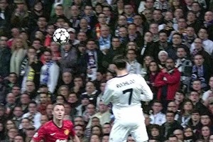 慢動(dòng)作欣賞C羅面對曼聯(lián)的這粒頭球!膝蓋和埃弗拉的頭部一樣高