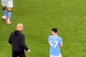 瓜迪奧拉賽后找福登時偷偷從背后給了腦袋一巴掌~